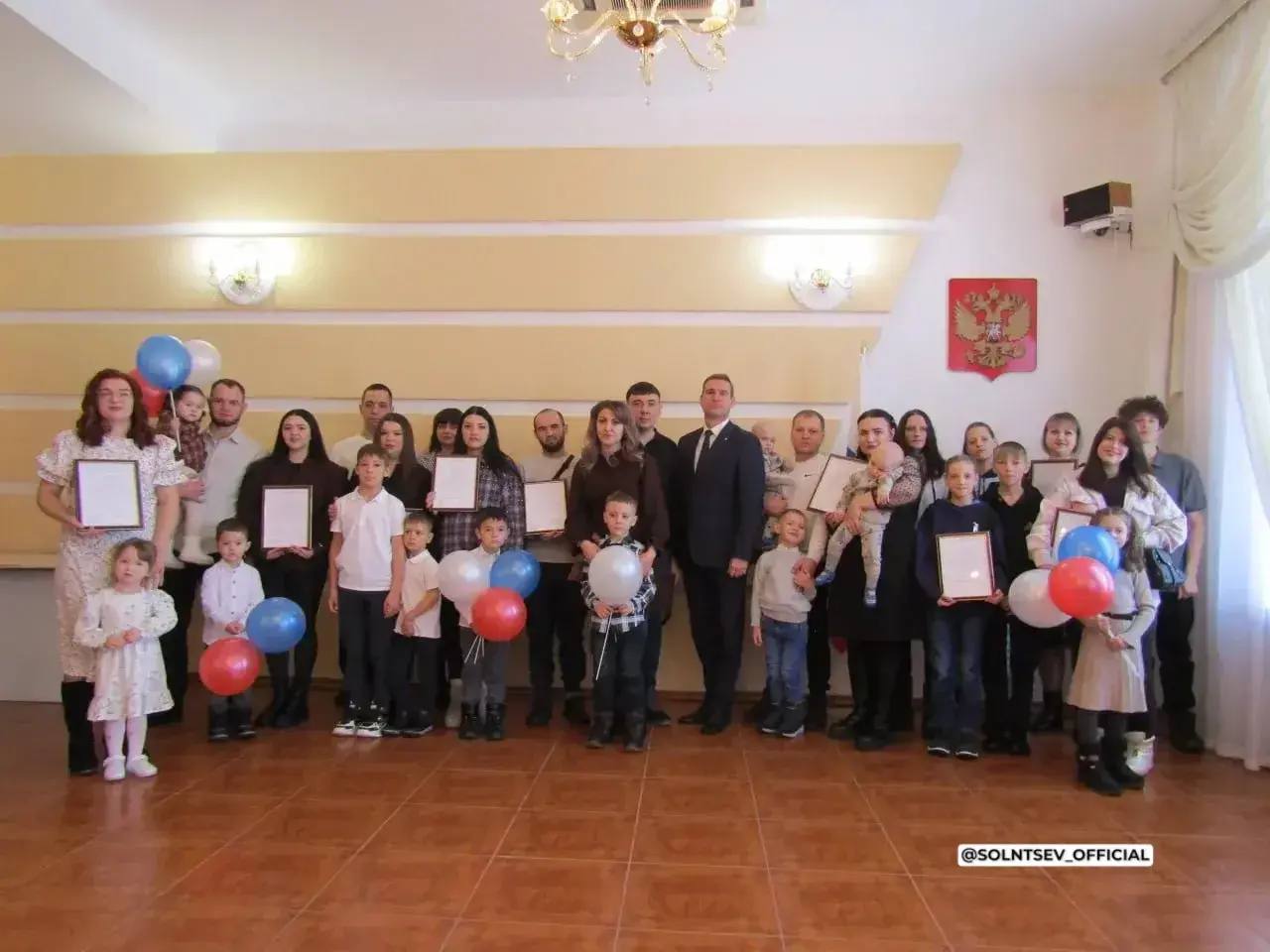 Евгений Солнцев поздравил семью и еще 10 молодых пар с получением сертификатов: