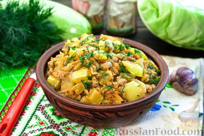 - Приготовление: Обжарить всё вместе на сковороде и подать горячим.