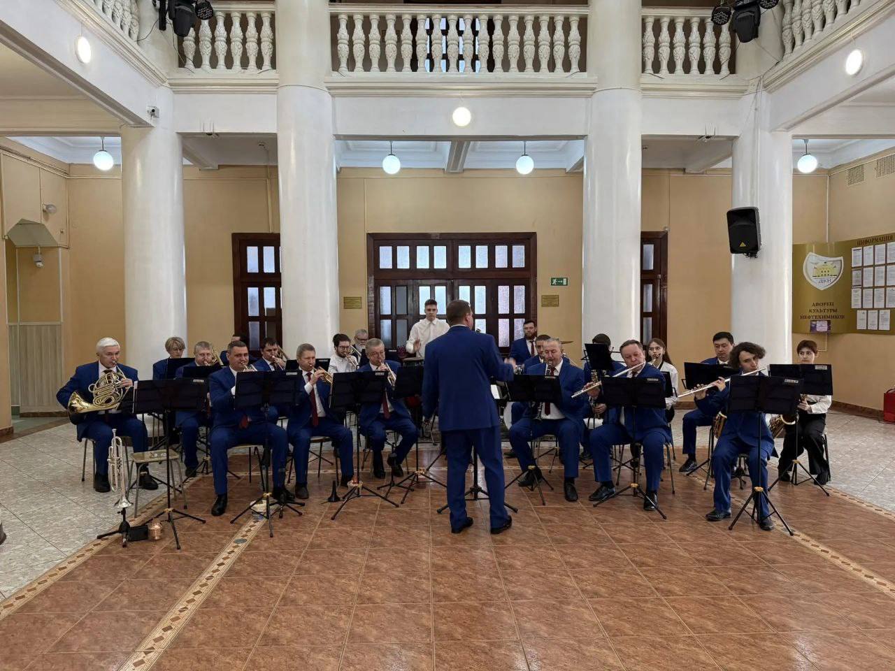 В фойе гостей фестиваля встречал Орский муниципальный духовой оркестр.