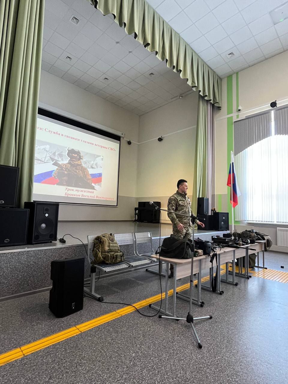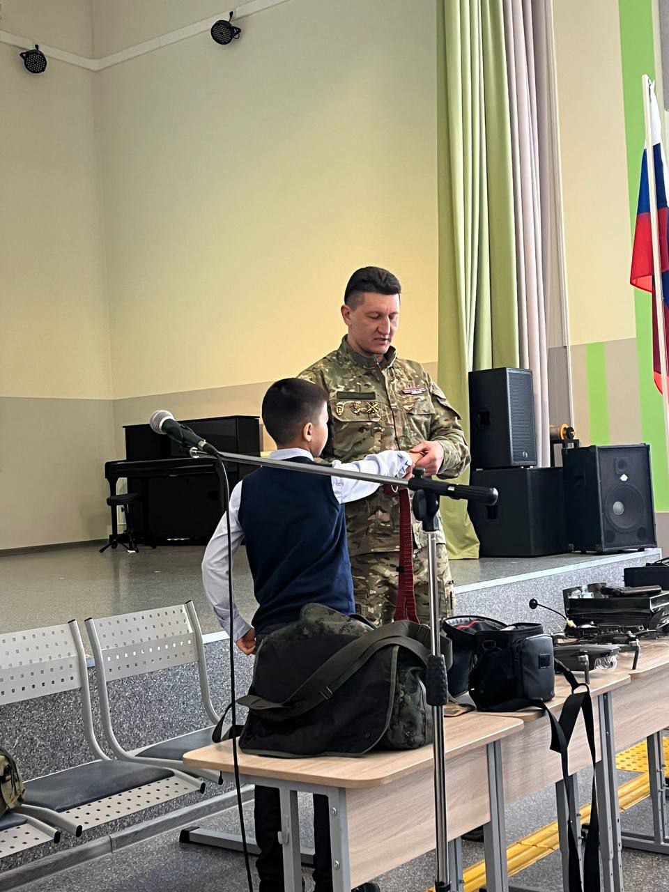 В МОАУ «СОШ № 4 г. Соль-Илецка» урок мужества провел ветеран СВО и социальный координатор фонда «Защитники Отечества» Соль-Илецкого муниципального округа Виталий Отрицов. С учениками седьмого класса говорили о мужестве, характере, о том, что защита Родины начинается с малого – учебы, уважения к старшим, готовности отвечать за свои поступки.