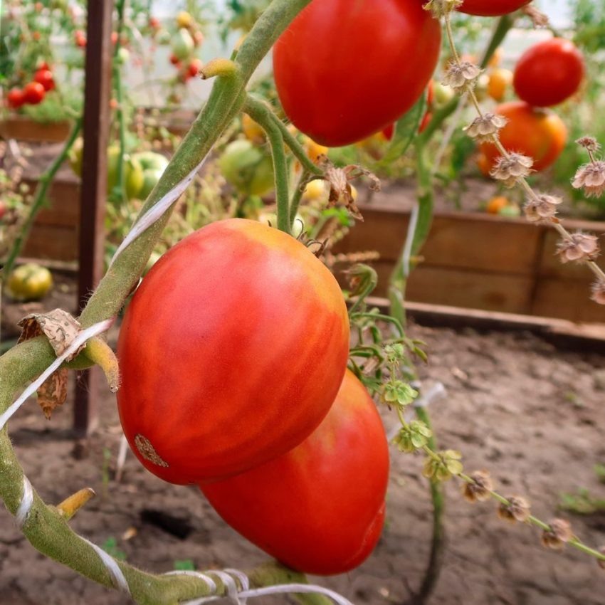 Этот сорт отличается индетерминантным ростом, что означает, что он может непрерывно расти в благоприятных условиях, достигая высоты свыше 200 см, особенно в тепличных условиях. Плоды формируются в кистях, с самыми крупными экземплярами весом до 800-1000 граммов, что предполагает регулярное пасынкование и формирование куста для достижения максимального размера и качества.