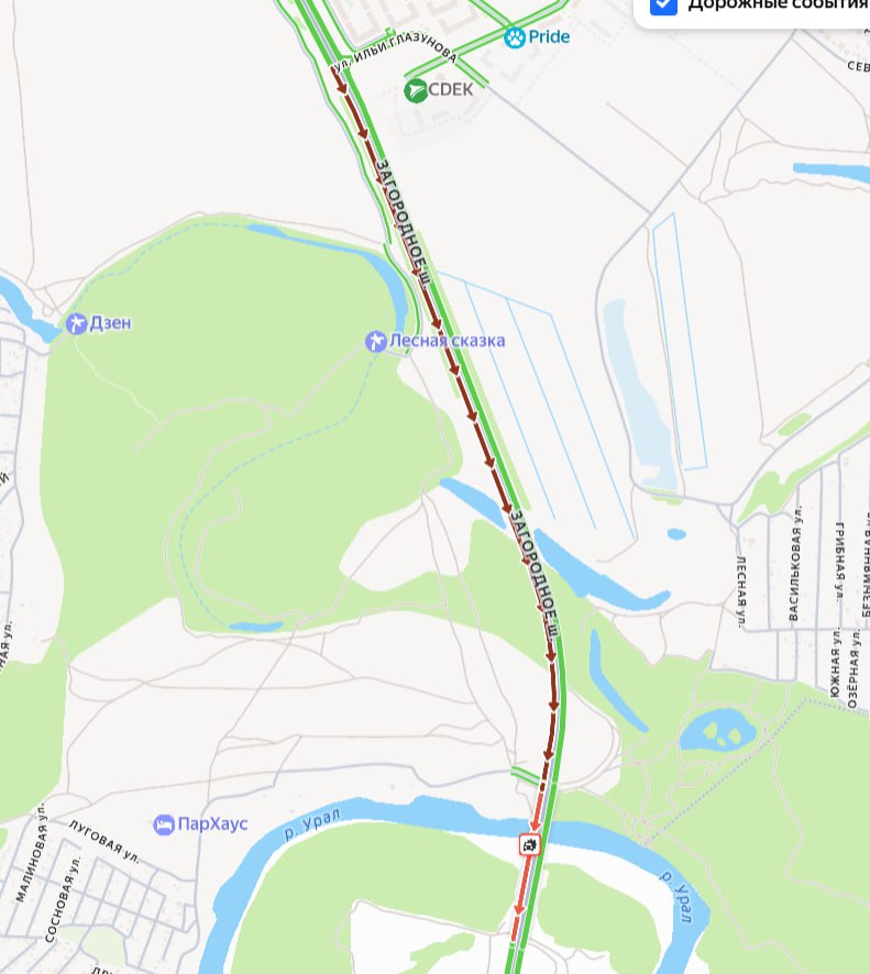 Загородное шоссе в Оренбурге встало. Пробка образовалась из-за двух ДТП.