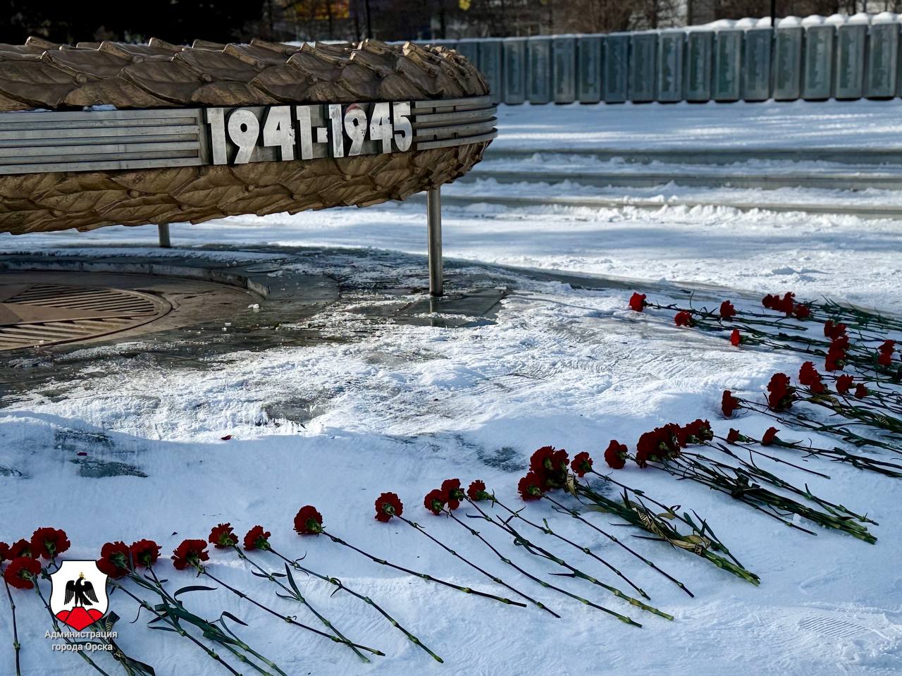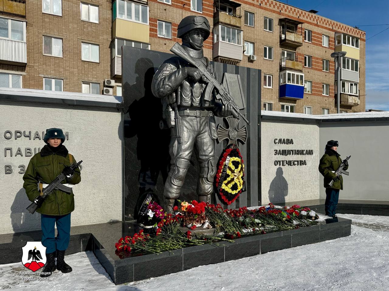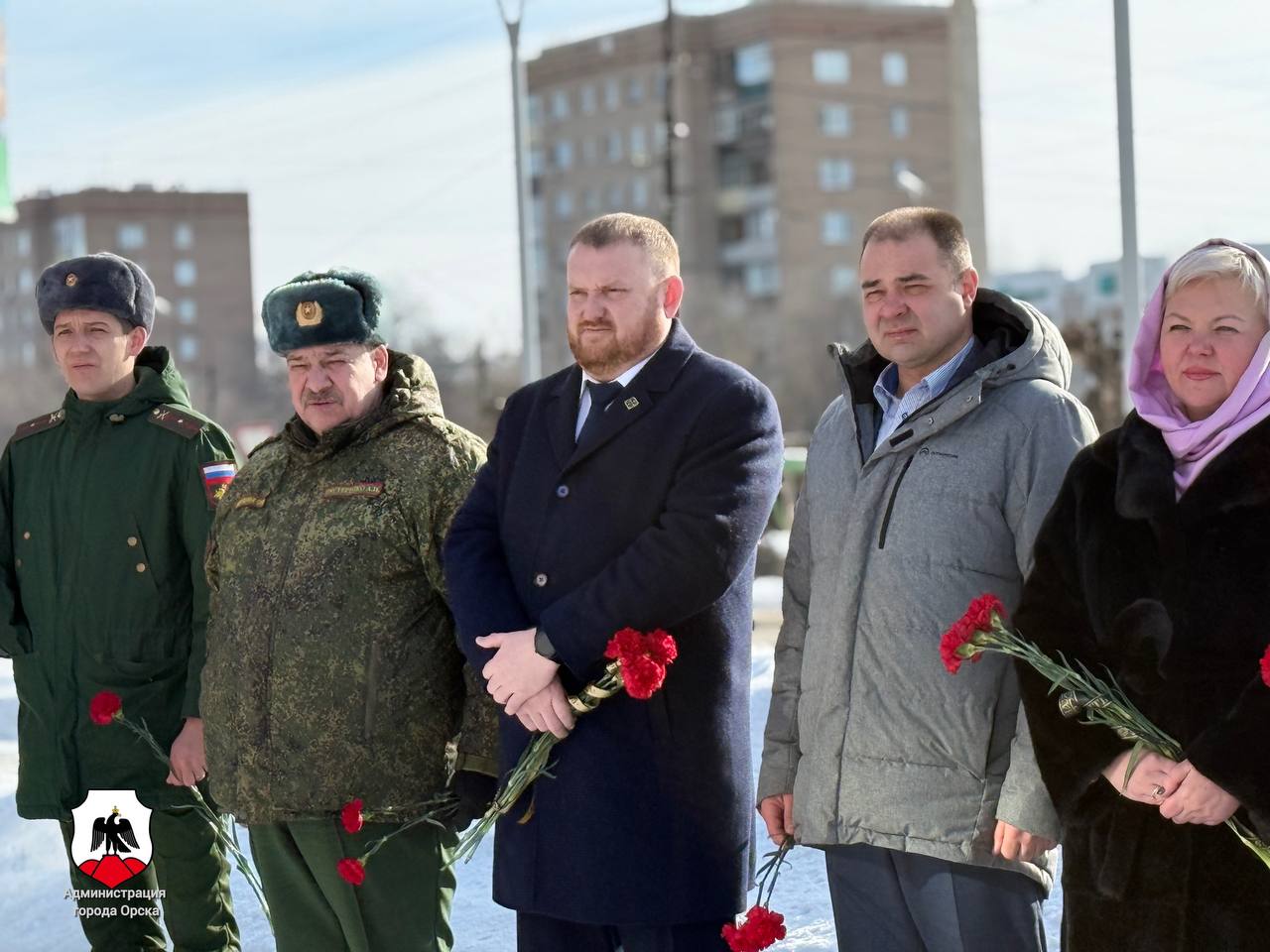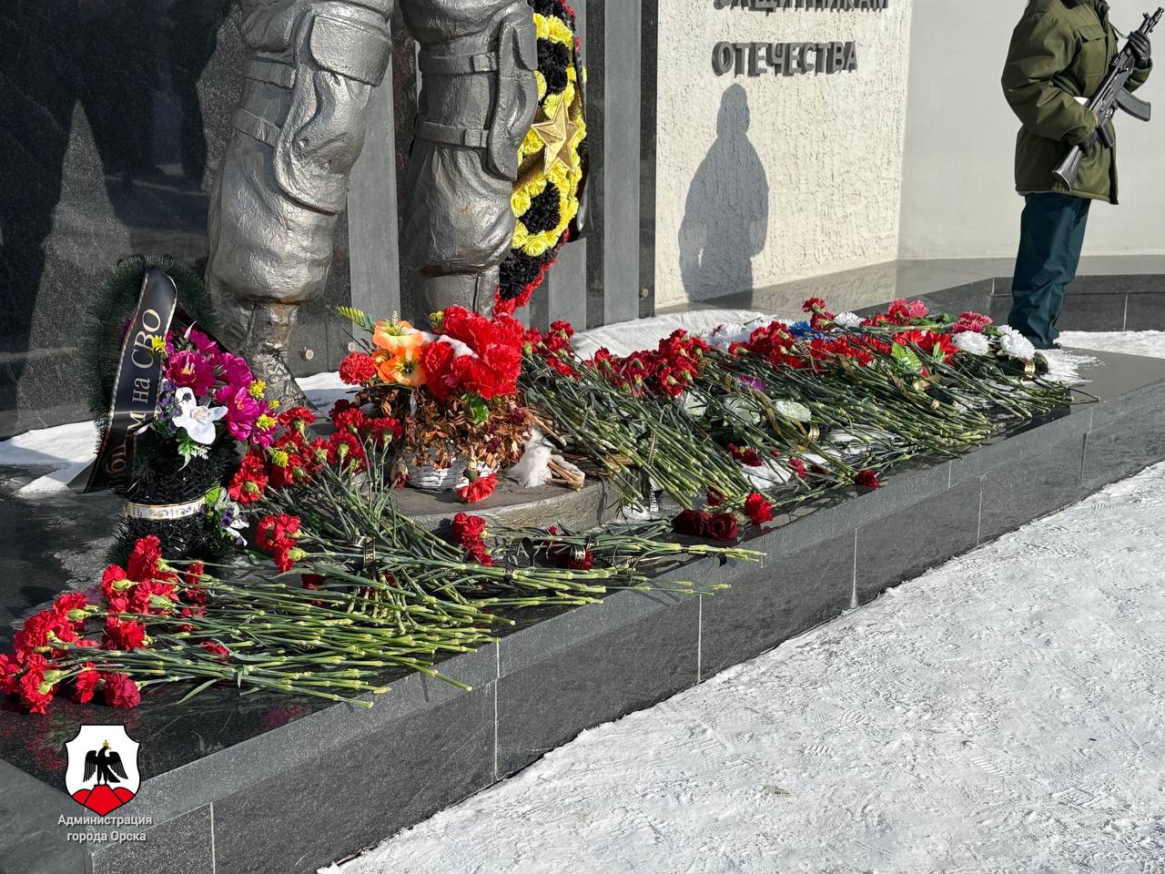 Цветы к вечному огню и мемориалу в память о земляках, погибших в ходе СВО, возложили Артём Воробьёв, глава Орска депутаты горсовета, участники СВО, ветераны, представители силовых структур, религиозных конфессий, общественных организаций, студенты.