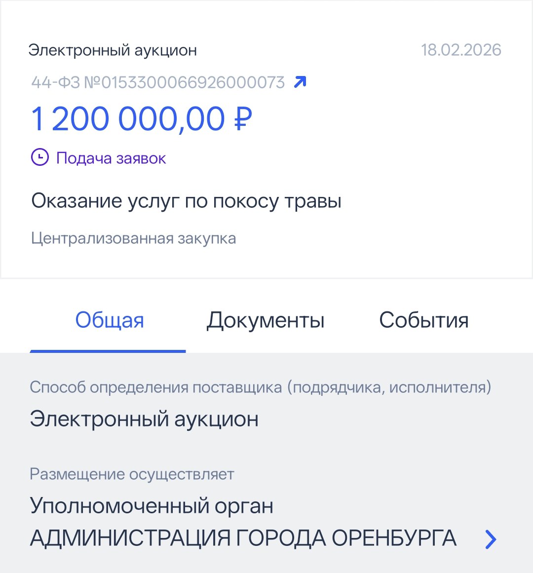18 февраля на сайте госзакупок появилась информация о том, что мэрия ищет подрядчика на покос травы на сумму 1,2 млн рублей.