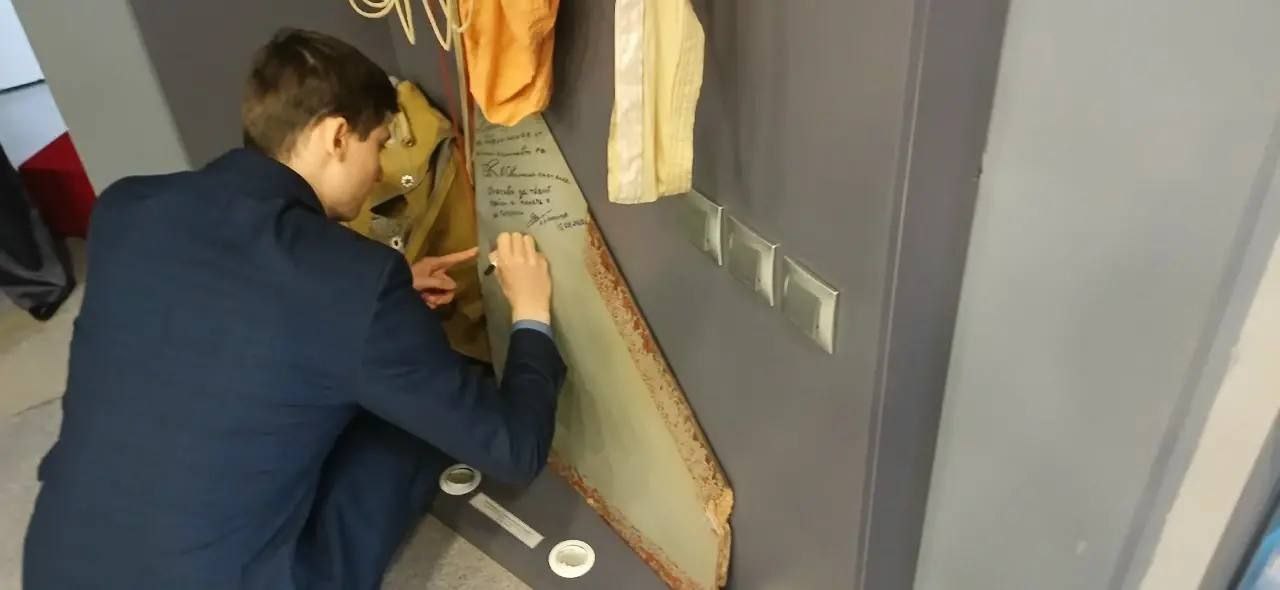 В Домемузее имени Юрия и Валентины Гагариных космонавт оставил автограф на воздушном руле – одном из центральных экспонатов музея.