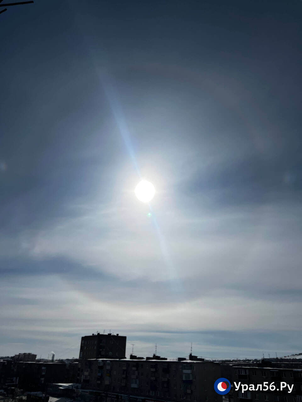 В небе над Орском возник оптический феномен Гало – светящееся кольцо вокруг источника света (в данном случае Солнца).
