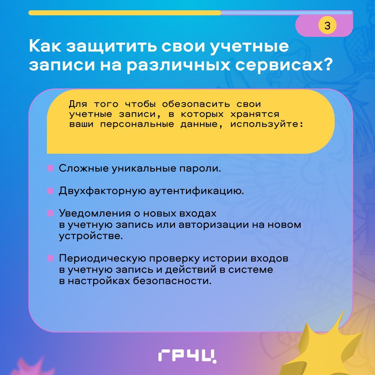 Для того, чтобы обезопасить свои учетные записи, используйте уникальные пароли, двухфакторную аутентификацию и авторизацию на новых устройствах.