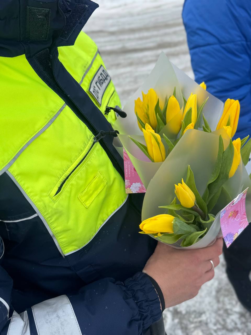 Интересно было наблюдать за контрастом эмоций автоледи, когда по требованию инспектора ДПС им приходилось останавливаться и получать вместо слов «предъявите документы», комплименты и тюльпаны. Сияние глаз, смущение и удивление читались по лицам.