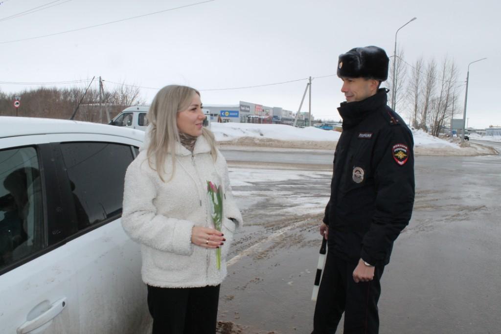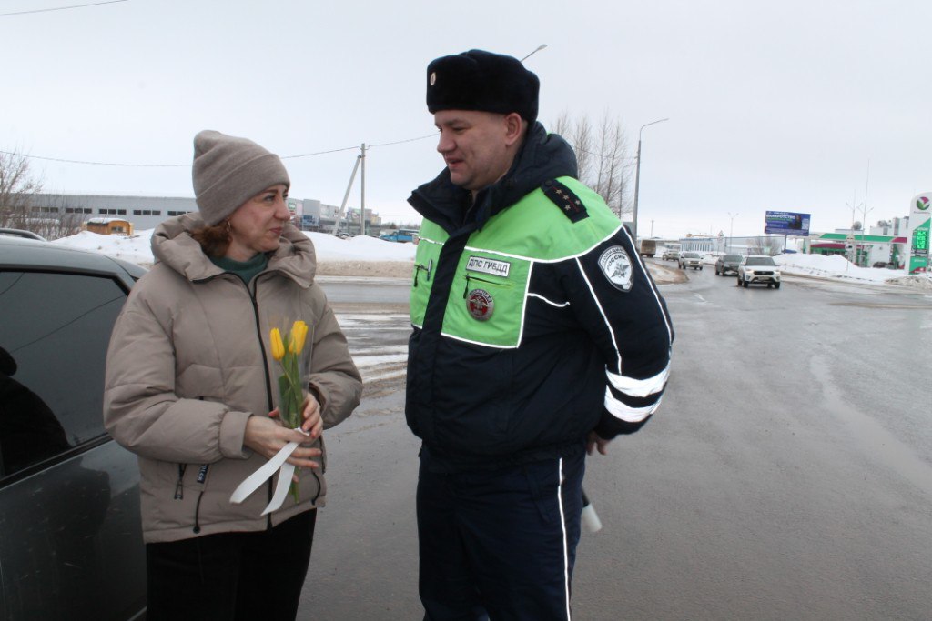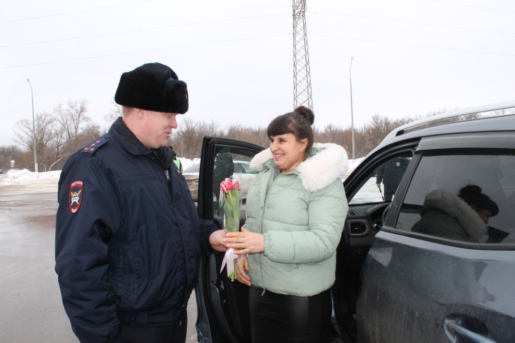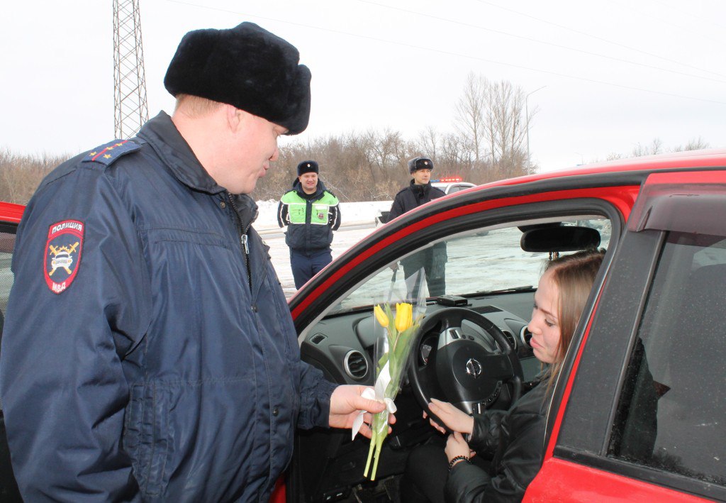 В преддверии Международный женский день сотрудники ГИБДД Бугуруслана провели традиционную праздничную акцию «Цветы для автоледи».