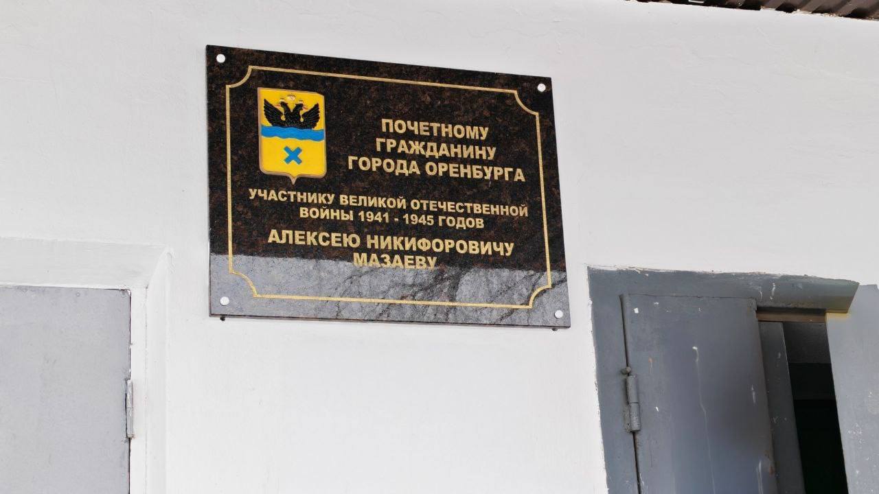 На фасаде дома №5 по улице Брестской торжественно открыли памятный знак Почётному гражданину Оренбурга, ветерану Великой Отечественной войны Алексею Никифоровичу Мазаеву. В церемонии участвовали его родные, кадеты и представители администрации.