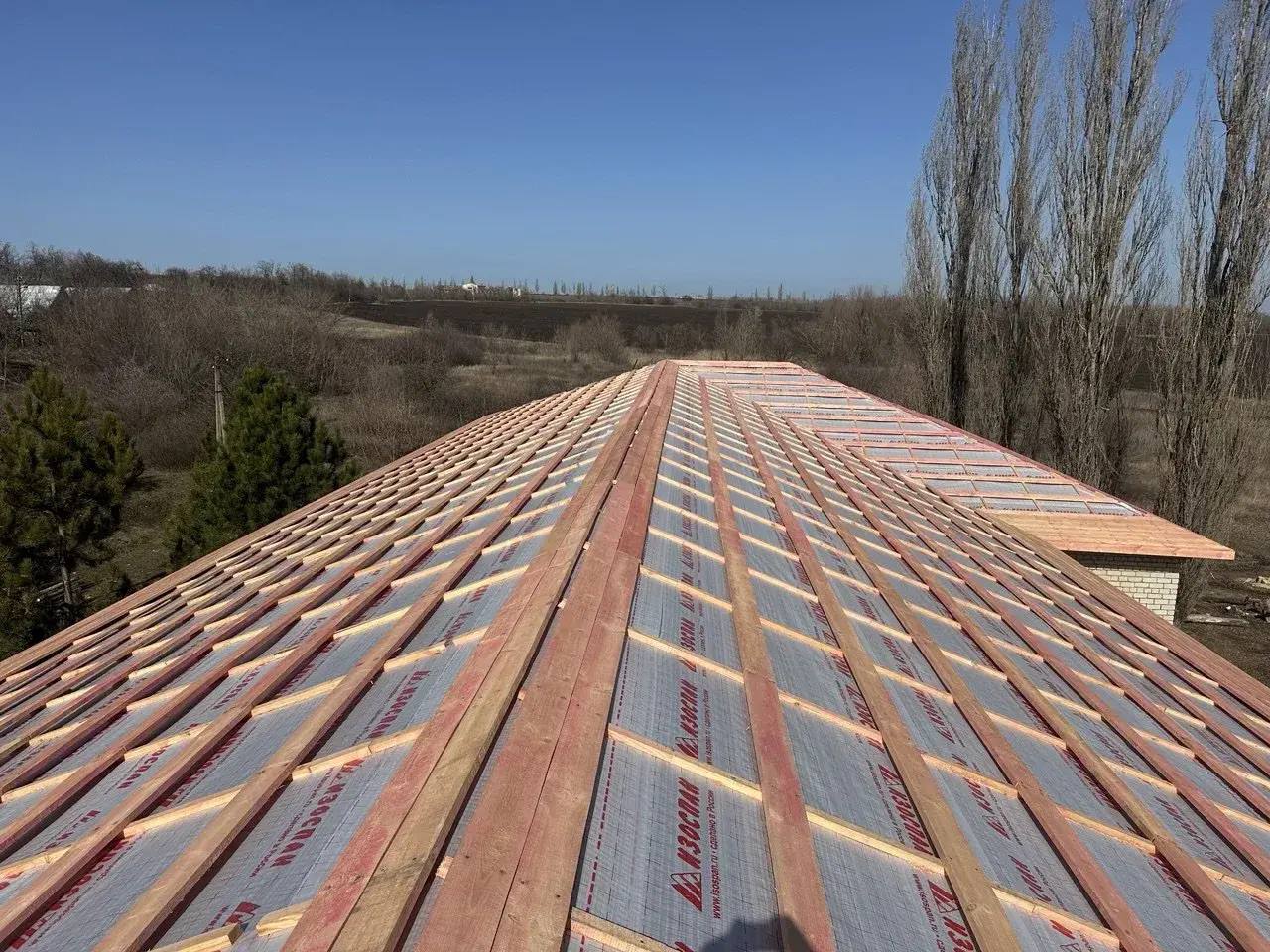 Старое покрытие основного корпуса школы демонтировано наполовину, также строители приступили к монтажу новой кровли: выполнили обработку деревянных элементов огнебиозащитным составом, восстанавливают кладку парапетов и вентканалов.