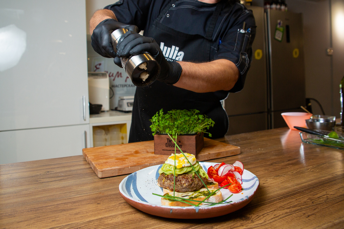 Это сытное и красочное блюдо идеально подойдет как для плотного завтрака, так и для легкого ужина. Хрустящая микрозелень, вкусный бифштекс и нежное яйцо — классика, проверенная временем.