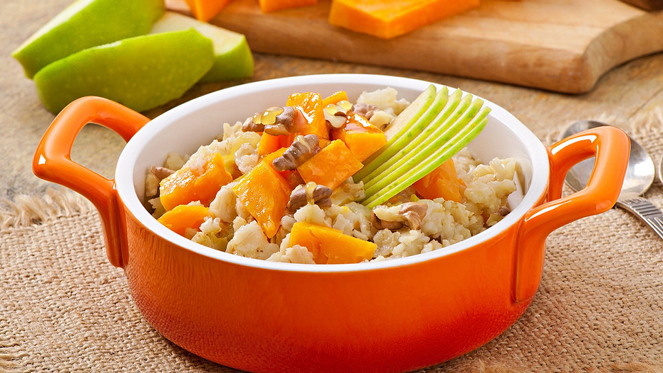 Эта каша сочетается с нежными кусочками яблок — идеальное сочетание для бодрящего утра.