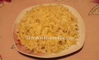 1. Начните с отваривания картофеля до готовности. Очистите его и натрите на крупной терке. То же самое проделайте с морковью, которую также следует отварить и натереть.