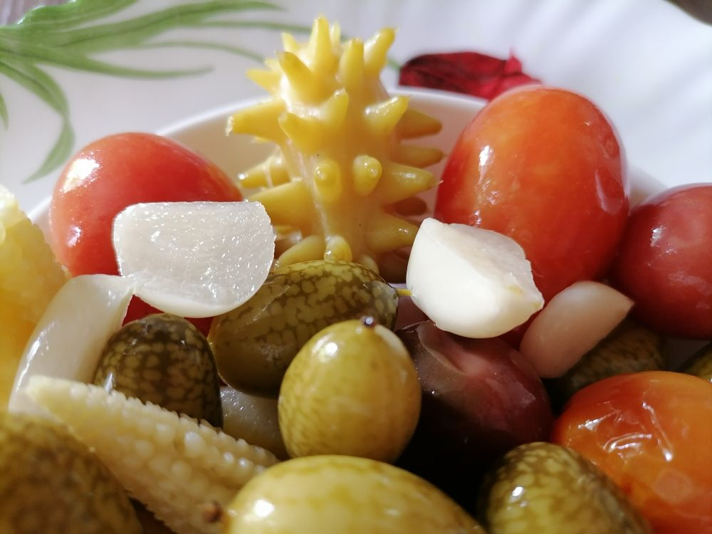 Семена кивано удалось приобрести в местном магазине. Высаженные в открытый грунт в начале июня, растения росли медленно, и лишь одно из них дало плод. Этот единственный экземпляр оказался интересным дополнением для солений, сочетаясь с привычными овощами.