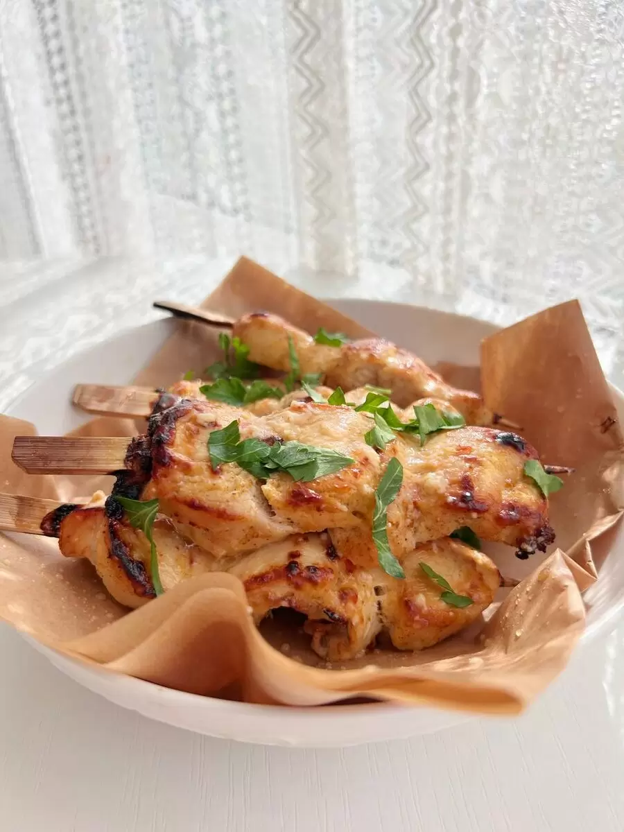 По истечении времени маринования, именно время использовать шпажки! Нанизать куриные кусочки на шпажки, смазать их приготовленным соусом и запекать в предварительно разогретой до 175 градусов духовке в течение 25 минут. Важно следить за временем, чтобы блюдо не оказалось пересушенным — это усилит его постельный вкус и текстуру.