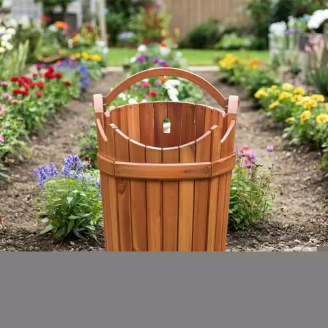 • Деревянные бочки: Старые кадки или бочки могут стать настоящим шедевром. Достаточно заменить сгнившее дно и обработать дерево антисептиком и лаком. В результате получится утилитарное ведро в эко-стиле, которое прекрасно впишется в любое загородное пространство. Добавление металлических обручей только усилит его аутентичность.