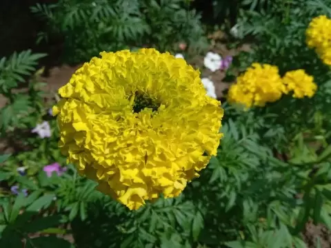 Эти бархатцы растут до 70 см в высоту и имеют пышные, махровые соцветия ярко-лимонного оттенка с зеленоватой сердцевиной. Они отлично подходят для срезки, позволяя приносить частичку лета в дом.