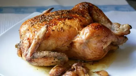Запекайте курицу при температуре 170-180 градусов на протяжении 1,5 часов. В результате вы получите нежное мясо с хрустящей корочкой и манящим ароматом, который соберет за столом всю семью.
