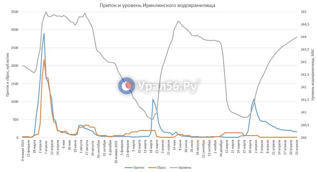 Приток 168 кубометров в секунду (на 22 апреля – 168 кубометров в секунду).