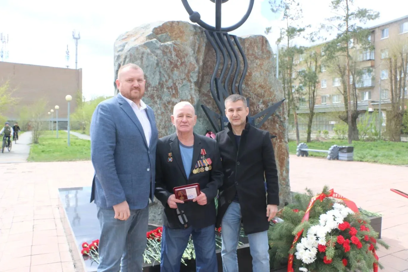 В сквере собрались Артём Воробьёв, глава Орска, ветераны-ликвидаторы и другие почетные гости.