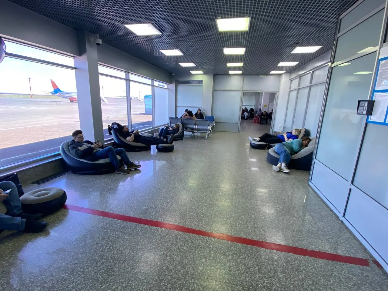 В аэропорту Оренбурга продолжают действовать ограничения на прием и выпуск самолетов. Как выглядит зал ожидания?