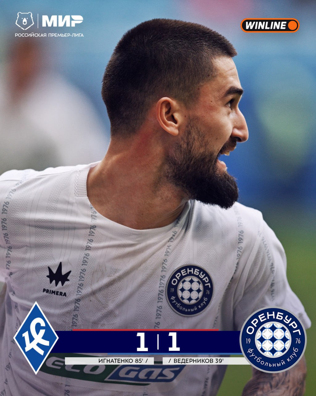 Футболисты «Оренбурга» сыграли вничью с самарскими «Крыльями Советов» со счетом 1:1 в гостевом матче 12-го тура Российской премьер-лиги (РПЛ).